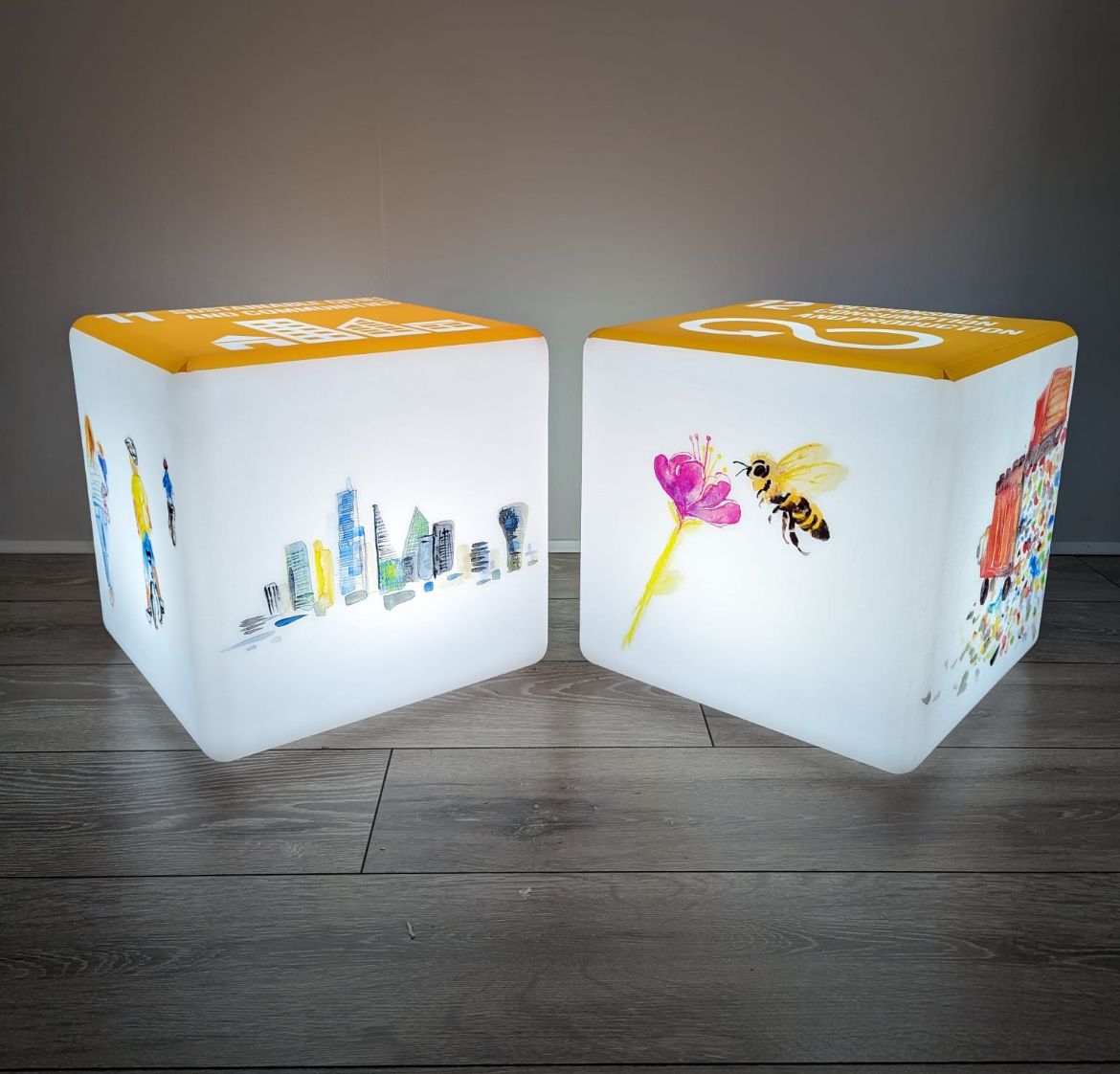 I illustrated and designed a major UK wide touring exhibition from ICE highlighting the issues we're facing from Climate Change and what civil engineers are doing to help. This involved designing illuminated panels for 3D pods. I also illustrated a series of animations which were shown inside the exhibition pods. Together with the client we decided on a hand painted watercolour style which I then layered up on screen. I also rolled out the whole exhibition designing signage, floor graphics, digital and print assets.